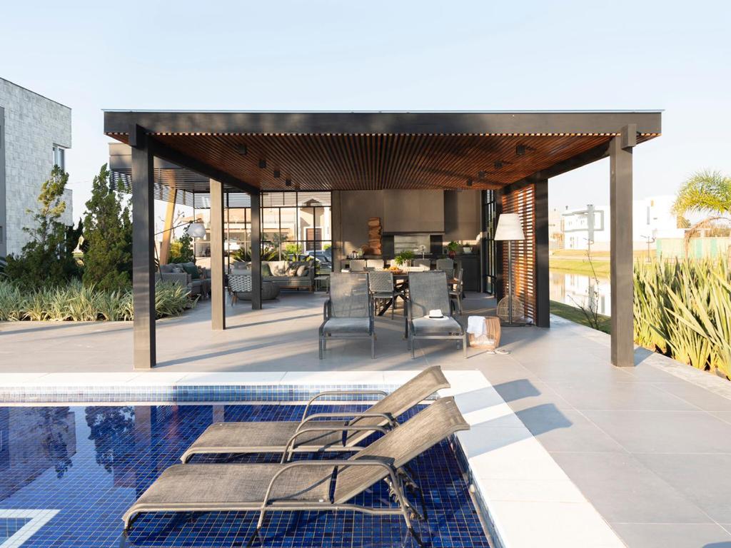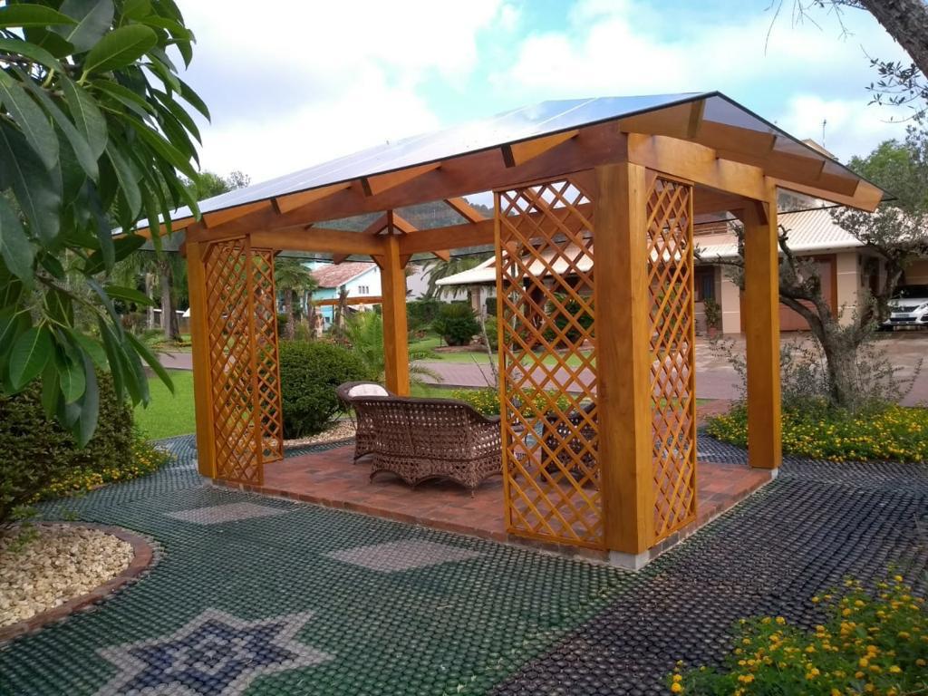 Podendo ser usados de inúmeras formas, cobertura para carros, embelezamento de jardins, área externa e extensão da casa. Com cobertura ou sem. Estrutura decorativa feita com vigas paralelas apoiadas em colunas.